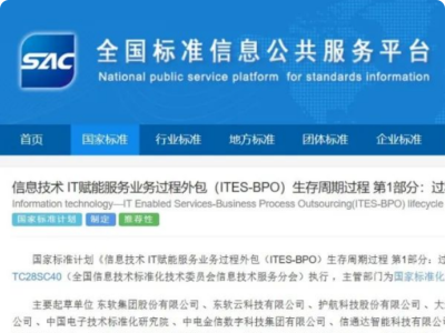东软云科技参与编写的《信息技术 IT赋能服务业务过程外包生存周期过程 第1部分:过程参考模型》等五项国家标准正式发布